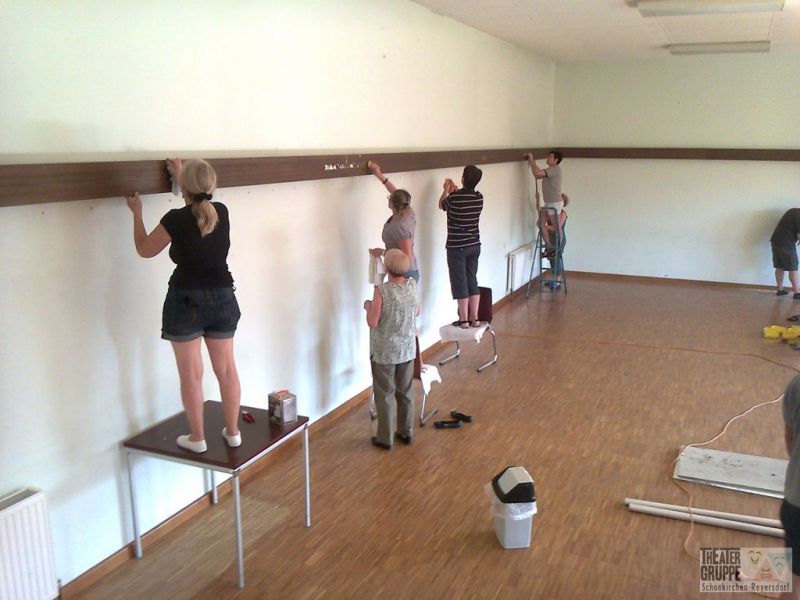 Die Malerarbeiten führt im Auftrag der Theatergruppe die Fa. Obetzhauser Wolfgang aus Bockfließ durch. Die Vorbereitungsarbeiten wurden in Eigenregie am Freitag den 12. Juli durchgeführt. Mit viel Elan und Schweiß wurde der komplette Saal ausgräumt und für das Ausmalen vorbereitet.....